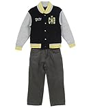 College Boyys , This College Boyys outfit will make him look smart and studious while maintaining a sense of stylish fun. The fleece jacket has a snap placket, contrast sleeves, varsity logo and Greek letter embroidery, handwarmer pockets, and striping on the ribbed trim. The jeans have an adjustable elastic waistband and logo embroidery on the back pocket. Too cool for school! Jacket: 60% Cotton, 40% Polyester Jeans: 100% Cotton Machine Wash Cold Made in Bangladesh ...