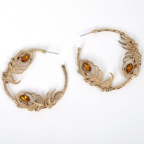 Here are some of the great features of Antique unique brown crystal peacock leather carved evil eyes round ear loop eardrop hoop earrings